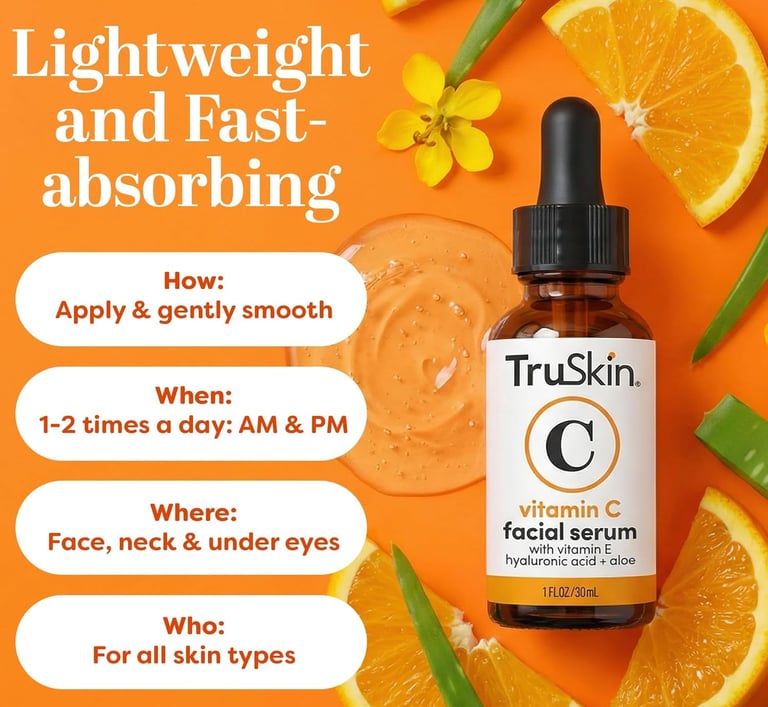 With consistent use, Vitamin C helps the skin appear more vibrant, even-toned, and youthful.